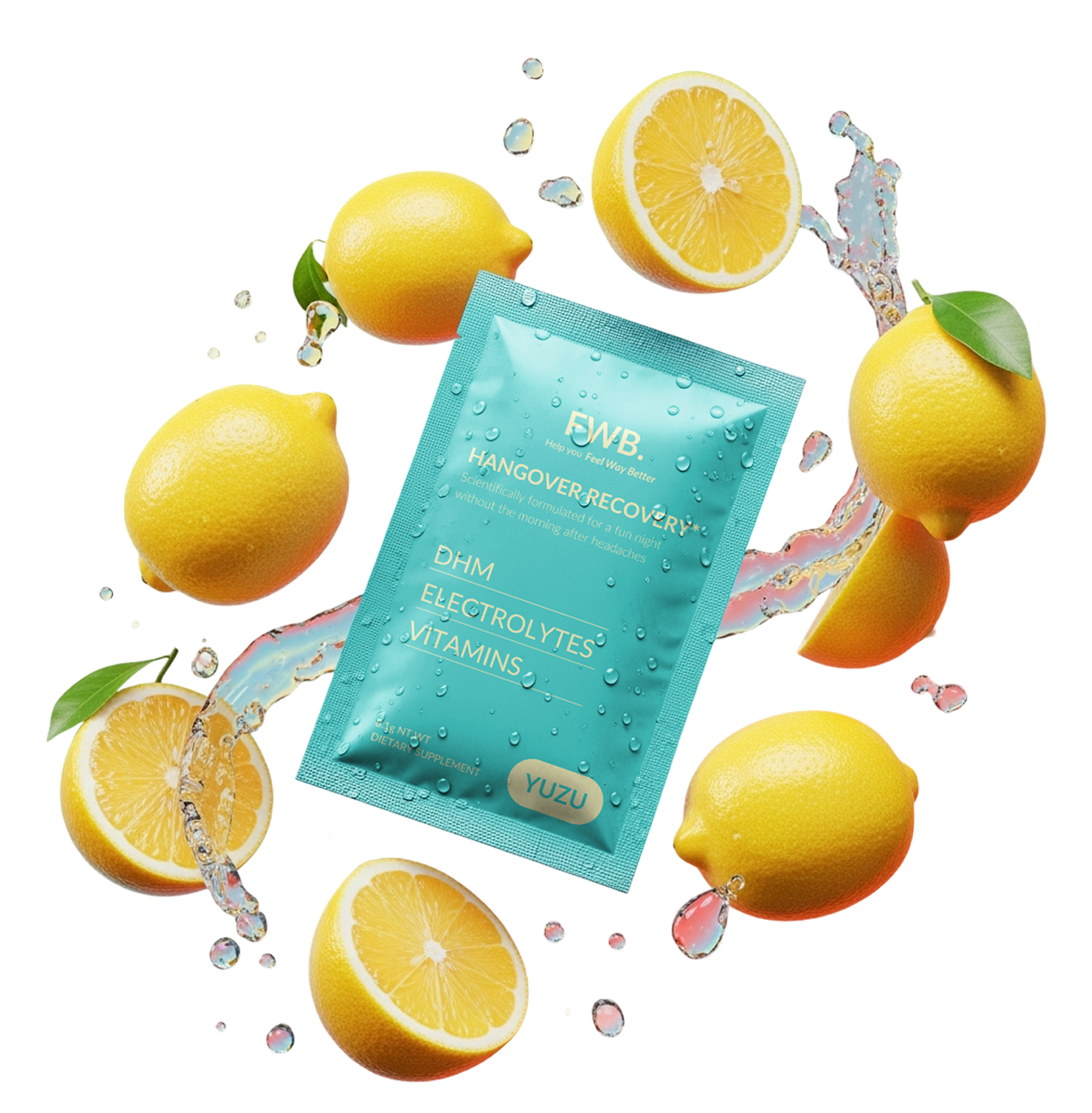 FWB is a fast-acting hydration and recovery drink designed to help your body bounce back after a night of drinking. It combines electrolytes, real cane sugar, DHM (a powerful antioxidant), and essential vitamins to support your liver, rehydrate faster, and reduce hangover symptoms so you can feel good the next morning.